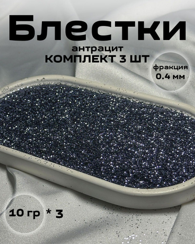 Блестки, цвет серый графит (3шт по 10 гр.) глиттер, декоративная добавка для жидких обоев