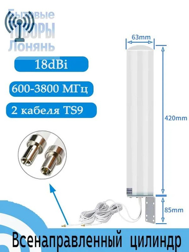 Антенна 18dBi для усиления 4G/5G сигнала внешняя уличная, всенаправленная, IP67, 5 метров кабеля Комплект для установки сетевого оборудования