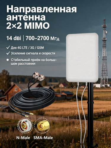 Антенна усиления 4G/LTE сигнала для дачи, направленная MIMO 2x2, 14 dBi, всепогодная Крепежные элементы антенны