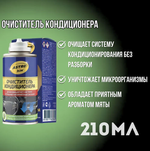 Очиститель кондиционера для автомобиля 210 мл ASTROHIM / Очиститель системы вентиляции для авто Астрохим / Освежитель (шашка) для кондиционера, аэрозоль AC-8602Очиститель кондиционера