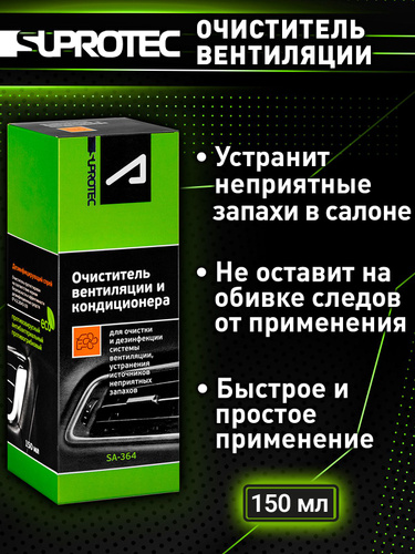 Очиститель системы вентиляции и кондиционера, устранение неприятных запахов, бактерий, грибков и вирусов, Супротек SA-364 150мл
