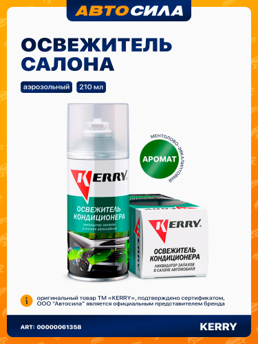 Освежитель кондиционера KERRY. Ликвидатор запахов в салоне автомобиля, KR-917, (аэрозоль), 210 мл