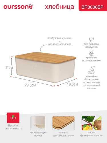 Хлебница Oursson BR3000BP/IV с деревянной крышкой