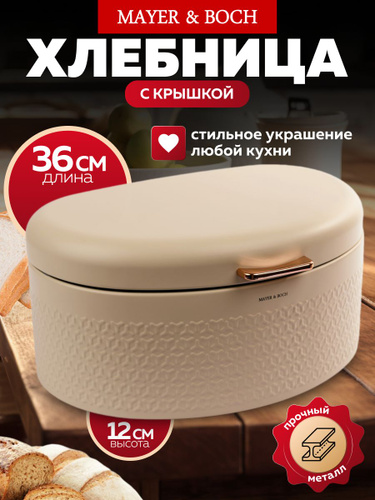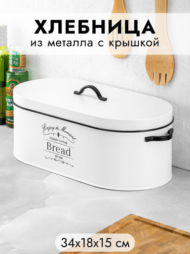 Хлебница металлическая с крышкой Elan Gallery Белая, 34,5х18х15 см