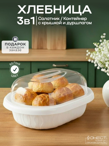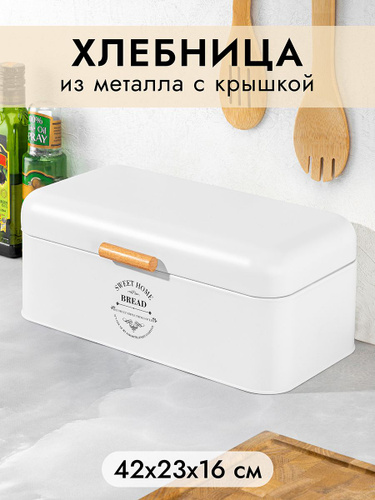 Хлебница металлическая с крышкой Elan Gallery Белая, 42,5х23х16,5 см