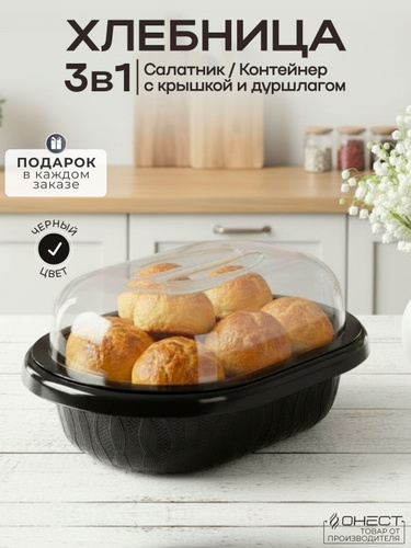 Хлебница металлическая с крышкой Elan Gallery Черная, 34,5х18х15 см
