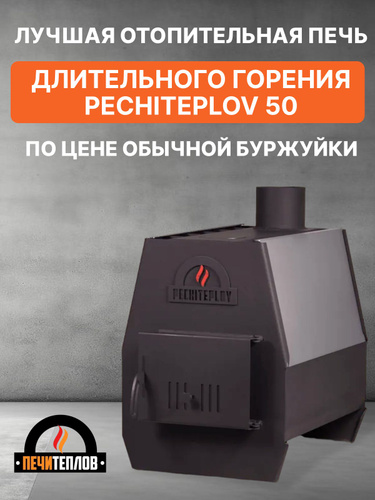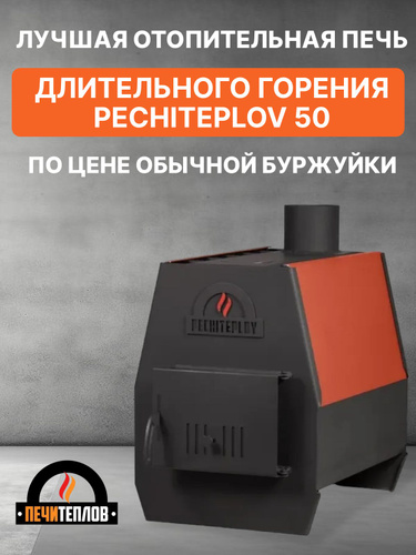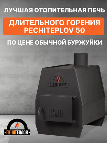 Печь отопительная долгого горения ПЕЧИТЕПЛОВ, до 50 м3, сталь 3 мм, с варочной поверхностью, цвет черный, буржуйка для дома, гаража, теплицы