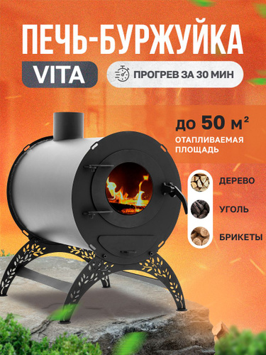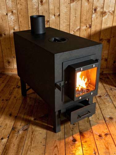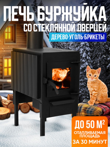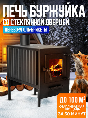 Печь буржуйка отопительная для дома и бани со стеклом МИНИ 50 кв.м.