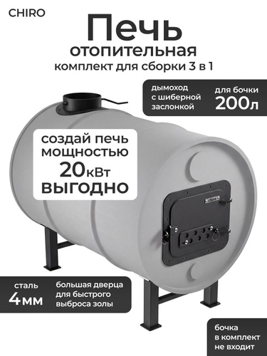Комплект для отопительной печи 20 кВт из одной бочки - 2 опоры, дверца, основание для дымохода