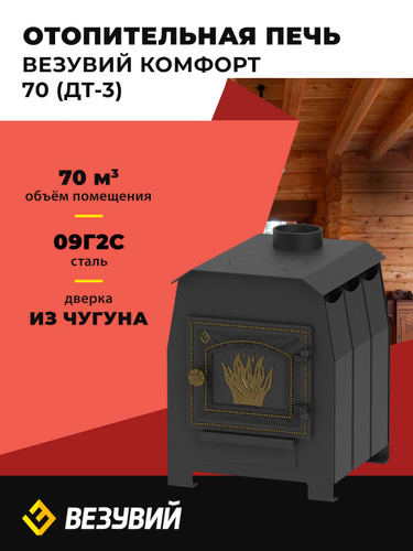 Отопительная дровяная печь Везувий "Комфорт 70" (ДТ-3) с дверкой из чугуна и варочной поверхностью