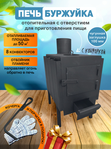 Печь отопительная Буржуйка с конфоркой и боковыми ребрами, система конвектор. Отапливаемая площадь: до 20 м .