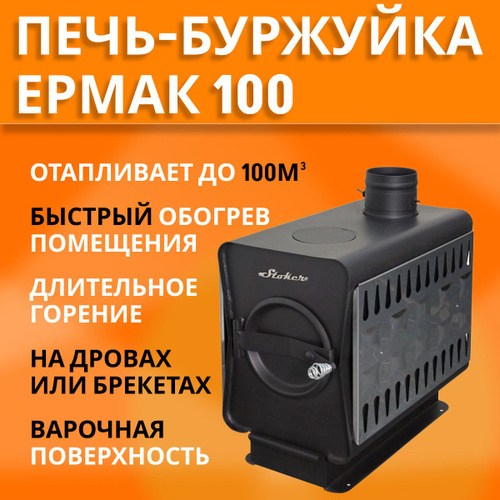 Отопительная дровяная печь Ермак Садовая 100 с плитой. Буржуйка-печь