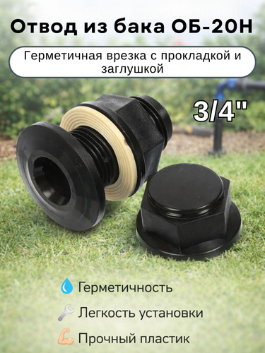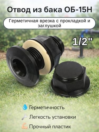 Врезка в бочку резьба 1/2" дюйма с прокладкой, врезка в емкость, отвод 1/2", АБС-пластик/Фитинги для капельного полива