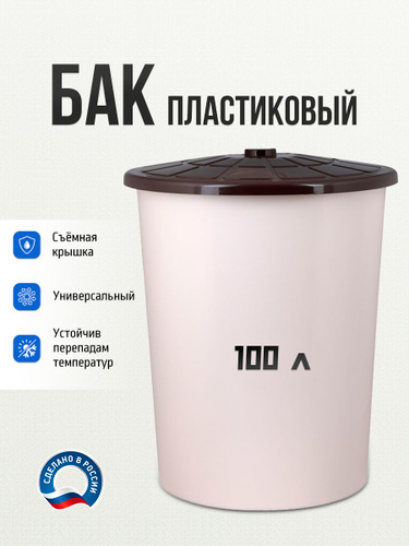 Пластиковая бочка универсальная , бак для воды, мусора 100 л, бежевый