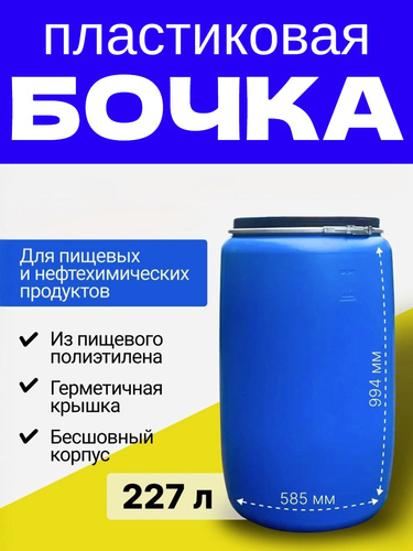 Пластиковая Бочка 227 литров для пищевых и химических продуктов