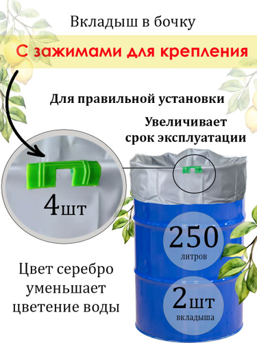 Вкладыши в бочку высокопрочные 250л с зажимами для крепления, 150 мкм, 2шт серебристые