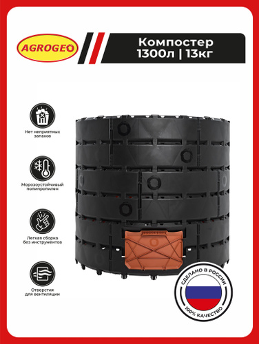 Компостер садовый AGROGEO 1300 литров черный контейнер пластиковый для сада бочка для компоста.