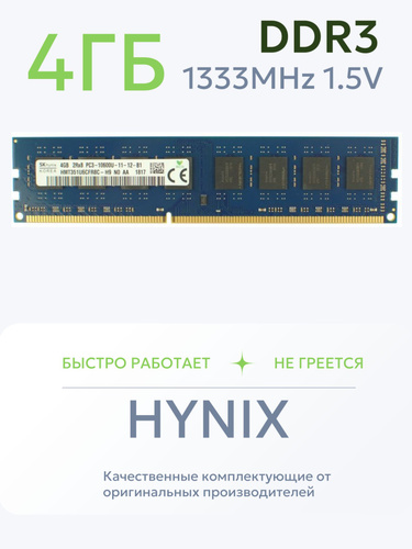 Hynix Оперативная память Hynix 4 ГБ DDR3 PC3-10600 1333 МГц DIMM 1x4 ГБ (HMT351U6CFR8C)