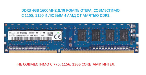 Hynix Оперативная память DDR3 4 ГБ 1600 MHz DIMM PC3-12800U 1x4 ГБ (HMT451U6AFR8C-PB)
