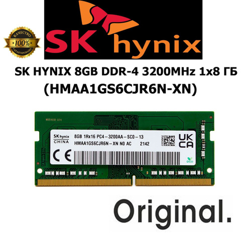 Hynix Оперативная память DDR4 8Gb 3200MHz 1x8 ГБ (HMAA1GS6CJR6N-XN)