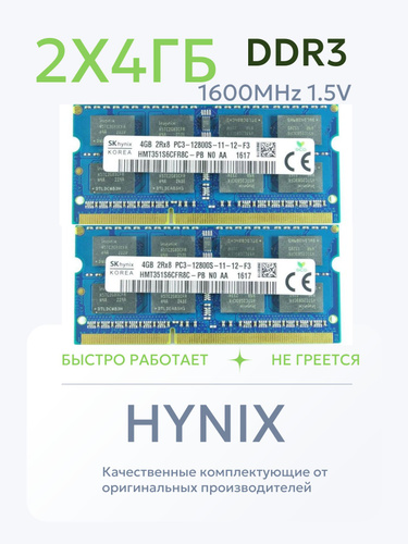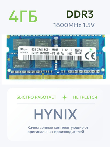 Hynix Оперативная память 4Gb DDR3 PC3-12800S 1600MHz SO-DIMM 1x4 ГБ (HMT351S6CFR8C-PB)