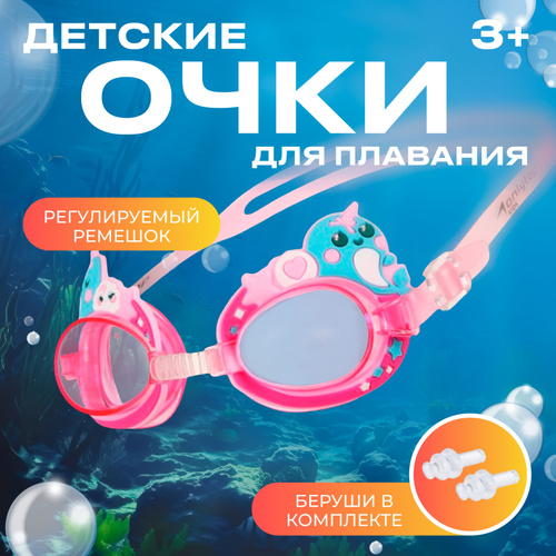 Очки для плавания детские"Нарвалы", беруши, цвет розовый