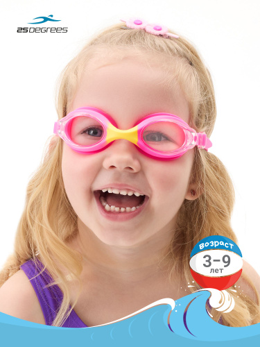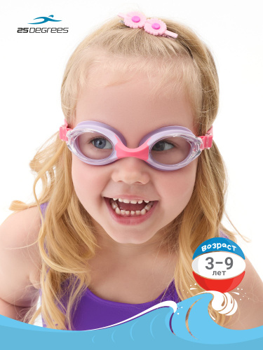 Очки для плавания детские 25DEGREES DIKIDS Pink, для бассейна, с УФ-фильтром, прозрачные линзы