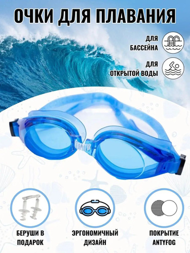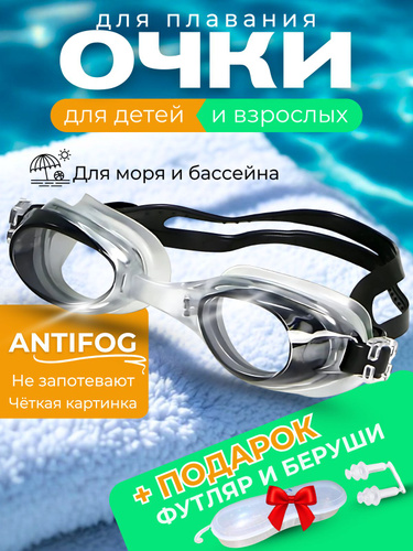 Очки для плавания мужские женские детские, с берушами для бассейна плавательные