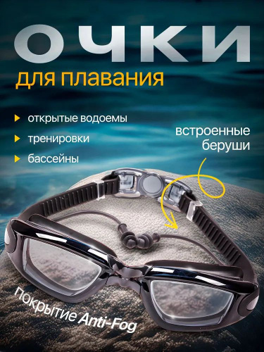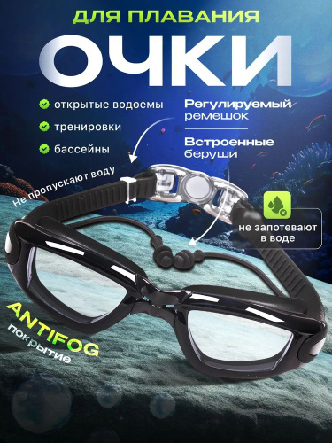 Очки для плавания с UV-защитой и Anti-Fog покрытием.