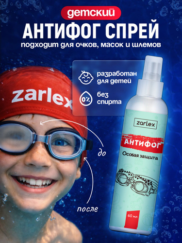 Zarlex Антифог детский от запотевания для очков, масок, шлемов, визора / Антизапотеватель спрей детский для плавания, подводных и горнолыжных масок, 60 мл