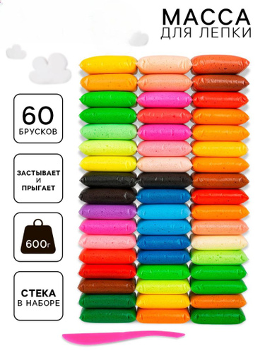 Воздушный пластилин, большой набор 60 брусков