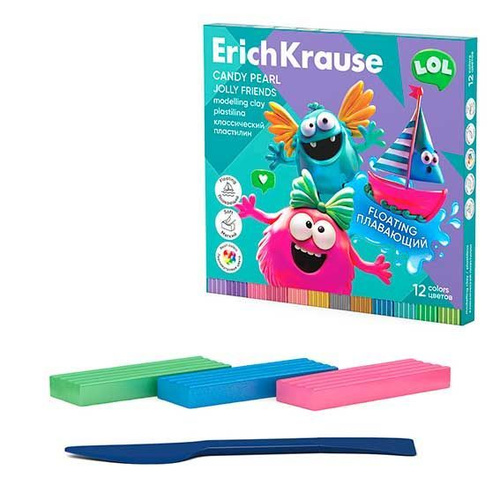 Пластилин Erich Krause Jolly Friends Candy Pearl, 12 цветов, 216 г, плавающий, стек