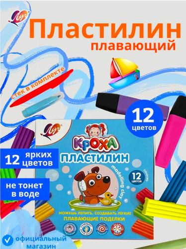 Пластилин плавающий Кроха, 12 цветов