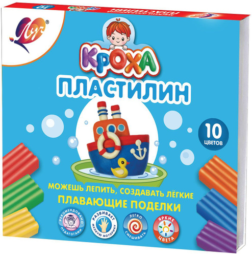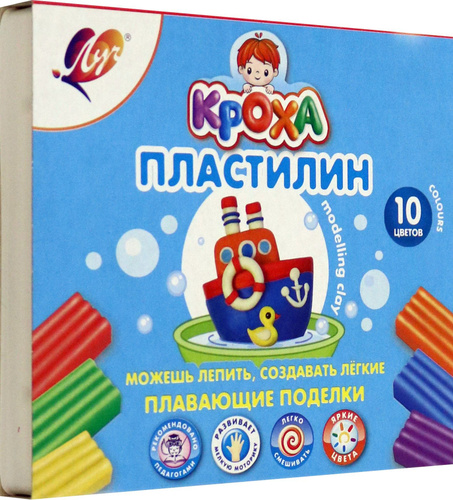 Пластилин 1шт 10 цветов 120гр ЛУЧ Кроха плавающий со стеком (картонная упаковка)