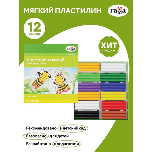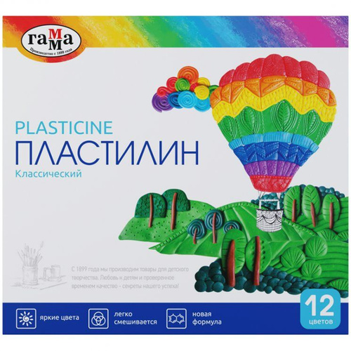 Пластилин Гамма 12 цветов 240гр Классический со стеком, картонная упаковка