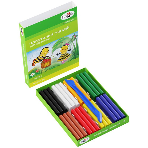 Пластилин восковой мягкий Гамма "Пчелка", 08 цветов, 120г, со стеком