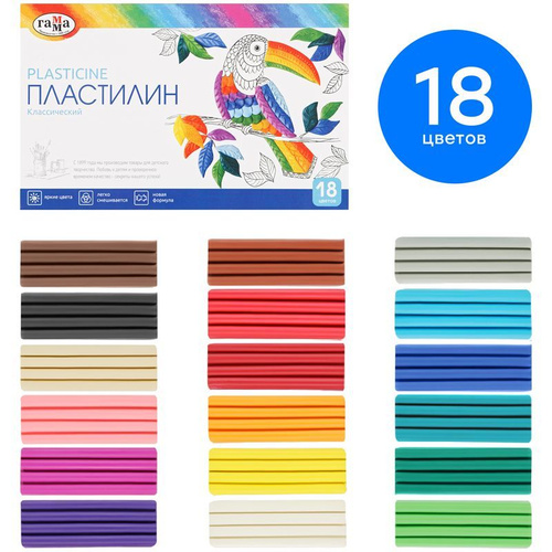 Пластилин для школы Гамма "Классический", 18 цветов, 360г, со стеком (281035)