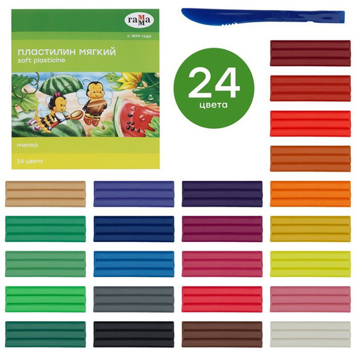 Пластилин для школы Гамма "Классический", 24 цвета, 480г, со стеком