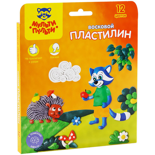 Пластилин Мульти-Пульти Енот в лесу, 12 цветов, 180г, восковой, со стеком, картон, европодвес