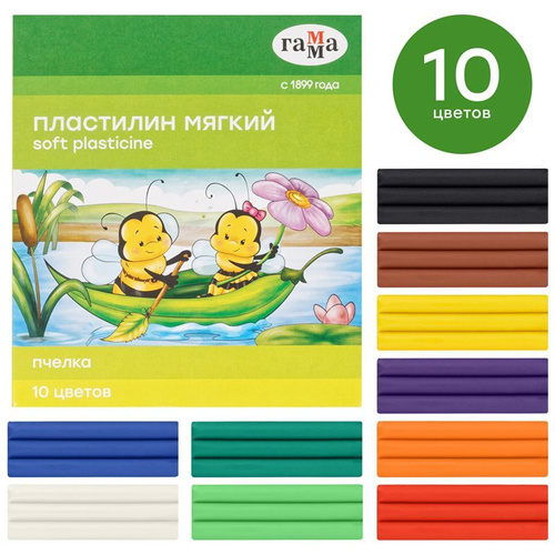 Пластилин для школы Гамма "Классический", 10 цв., 200г, со стеком