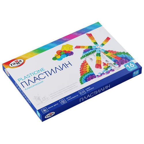 Пластилин для школы Гамма "Классический", 16 цветов, 320г, со стеком