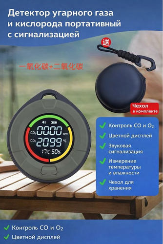 Детектор CO и CO2 портативный с сигнализацией