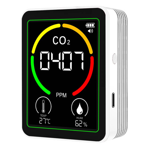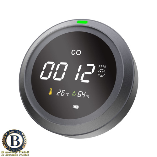 Трехвальный детектор монооксида углерода с сенсорным экраном портативный заряжаемый прибор, оснащенный датчиками температуры и влажности,