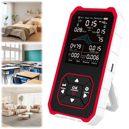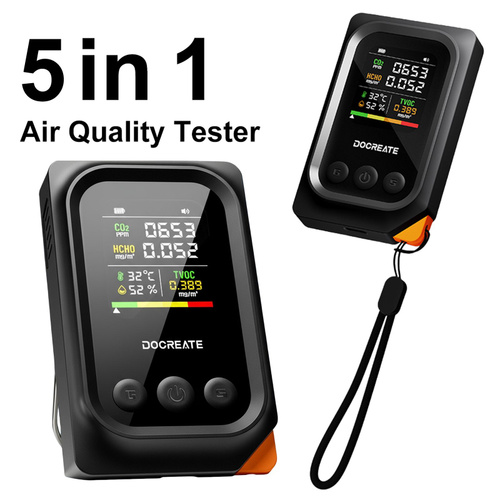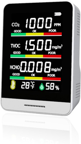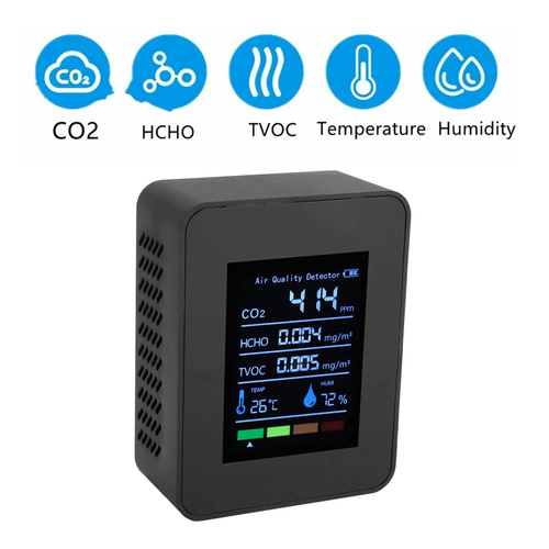 Монитор качества воздуха в помещении: портативный 5-в-1 детектор с измерением CO2, TVOC, формальдегида, температуры и влажности для дома, офиса, школы, отеля, автомобиля