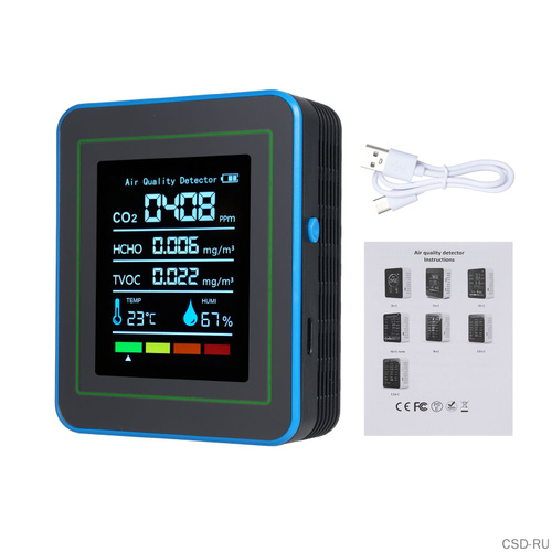 Портативный анализатор качества воздуха с измерением CO , PM2.5, HCHO, TVOC, температуры и влажности