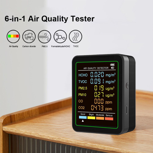 6-в-1 измеритель качества воздуха тестер CO2 в реальном времени детектор HCHO для домашних автомобилей растений