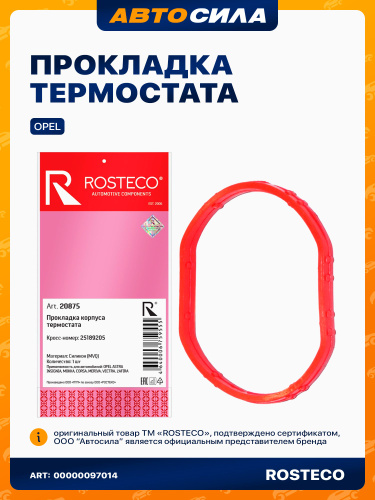 Прокладка корпуса термостата 25189205 OPEL ASTRA INSIGNIA, MOKKA, ROSTECO арт. 20875