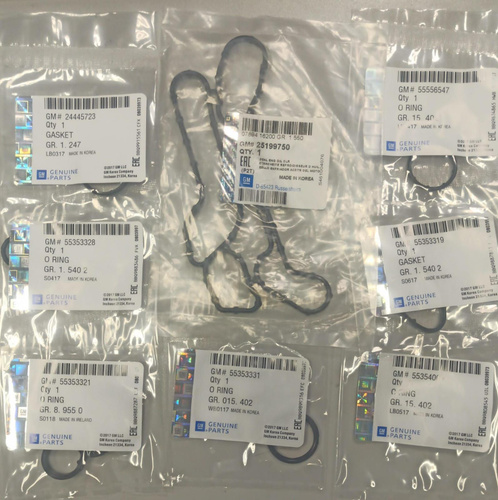 Комплект прокладок теплообменника, помпы и корпуса термостата GM (9 шт.)
