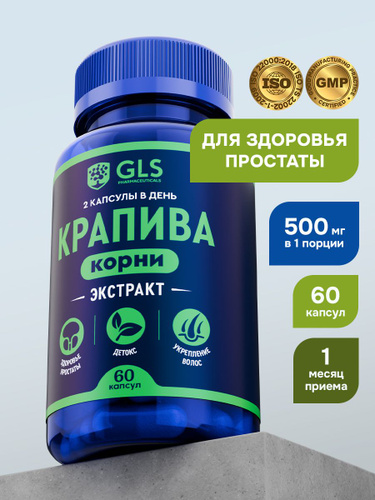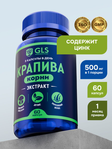 Крапива Экстракт 500 мг с Цинком, витамины / бад для мужского здоровья и детокса, 60 капсул