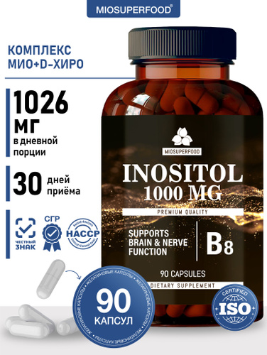 Инозитол 90 капсул 1000 мг Miosuperfood Миофарм, хиро и мио inositol. БАД для женского здоровья и баланса гормонов, витамины для женщин, для планирования беременности